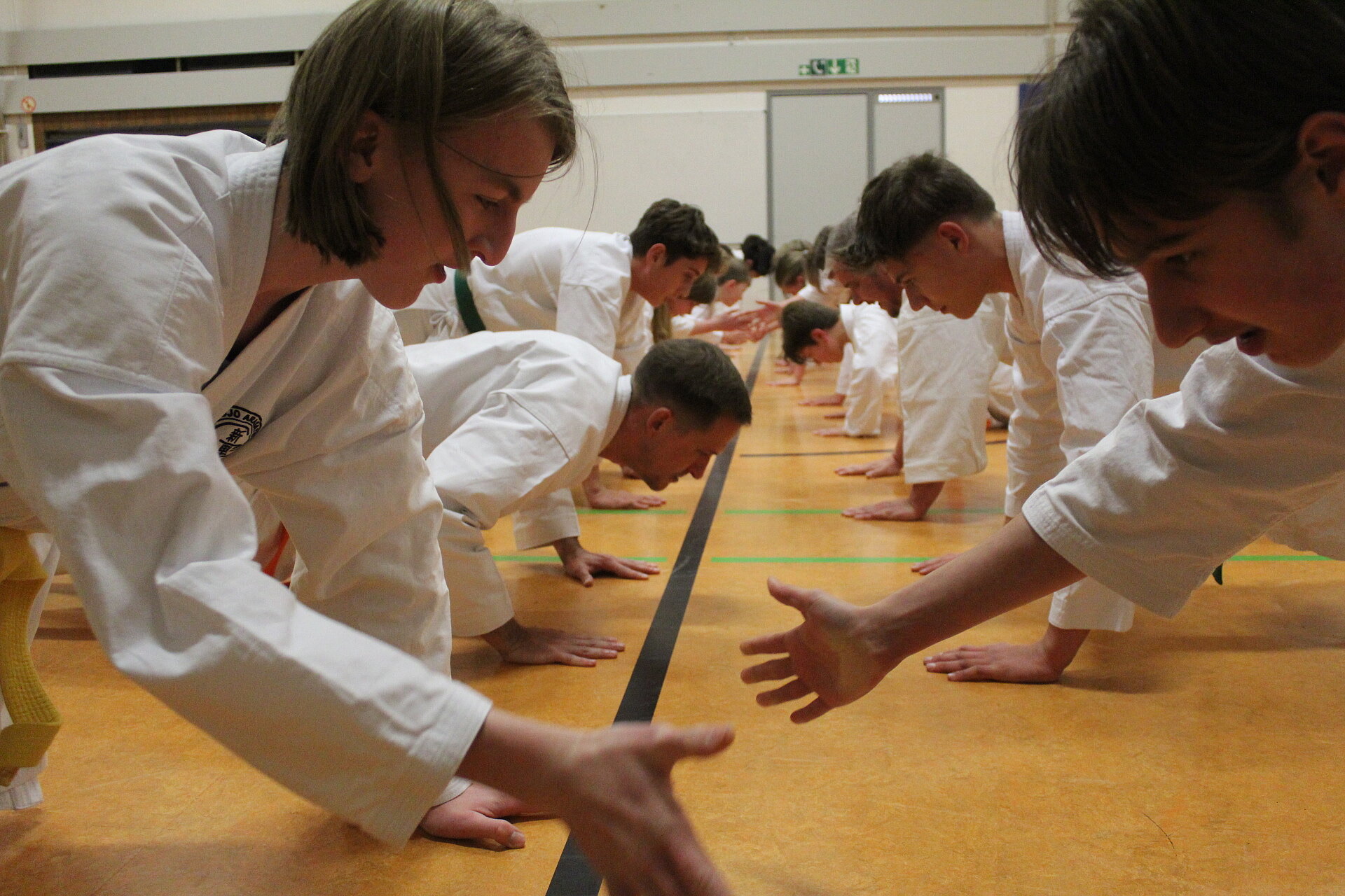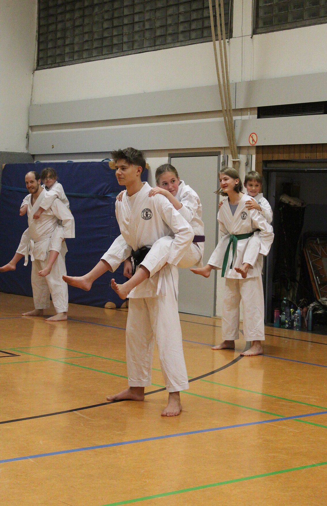 Auch diese Jahr fand wie immer unser Jahresabschlusstraining als letztes Training im Jahr statt. Traditionell lassen sich hier alle aktiven Karateka, vom jüngsten Weißgurt bis zum ältesten DAN-Träger, von der Oberstufe bespaßen.